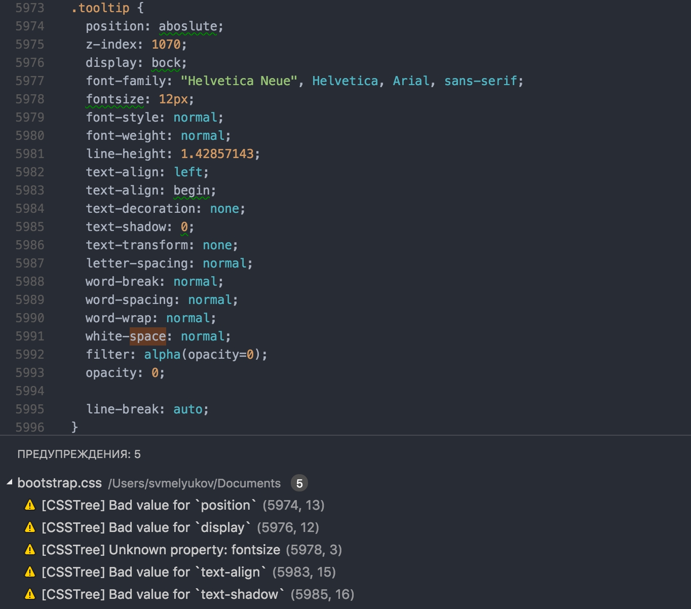 Extension highlights the wrong properties and values when enabled. Just install the extension and open your CSS file. Validation will be performing in background.